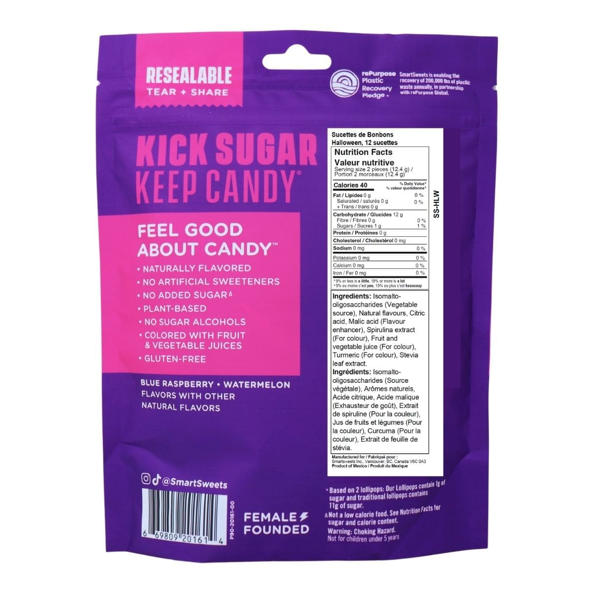 SmartSweets Halloween Lollipops Blue Raspberry & Watermelon, 12 lollipops