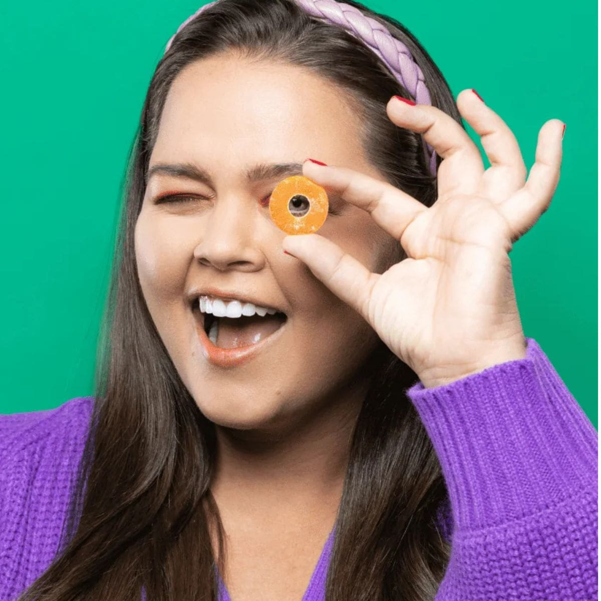 Isomalto-oligosaccharides (vegetable source), chicory root fibre, water, modified potato starch, rice flour, pectin, malic acid, citric acid, lactic acid, fumaric acid, stevia leaf extract, pumpkin, carrot, and apple preparation (for colour), natural flavours, carnauba wax, modified coconut oil.