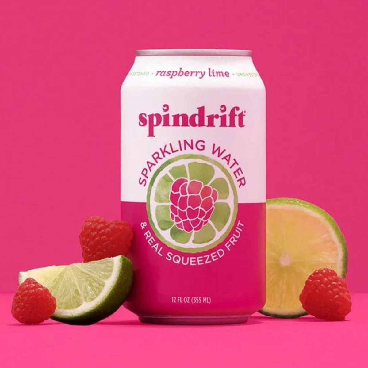 Spindrift Sparkling Water With Real Fruit Raspberry Lime, 355ml – Carbonated water, Raspberry puree, Lime juice.
