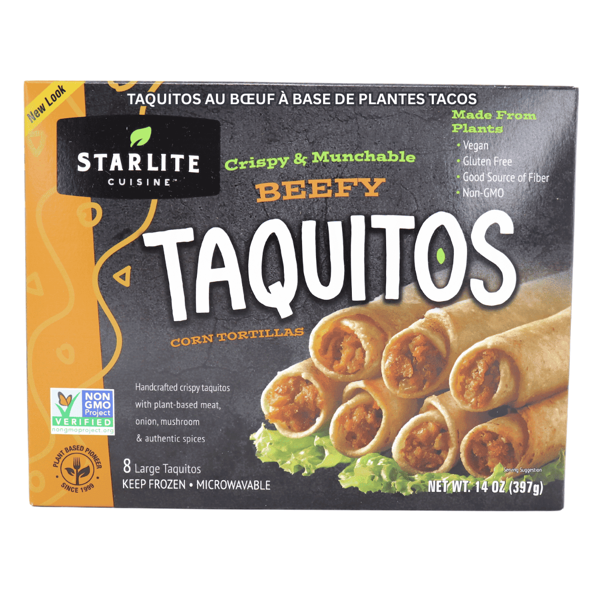 Ready to be the ‘taq’ of the town with Starlite Cuisine’s frozen taquitos? With handcrafted crispy shells filled with plant-based beef, onions, mushrooms and a blend of authentic spices, you get a flavour bomb in every bite. With its satisfying crunchy and beefy flavour that would fool even the biggest meat lover, these vegan taquitos are simply spec-taq-ular!