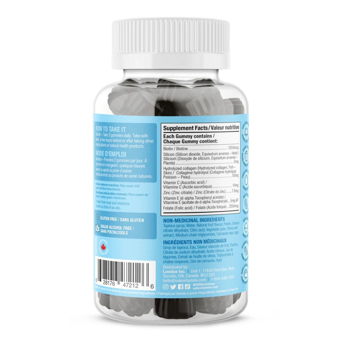 SUKU Vitamins Sugar-Free Gummies Luscious Hair with Biotin, Collagen, Silicon & Folate, 60 Gummies