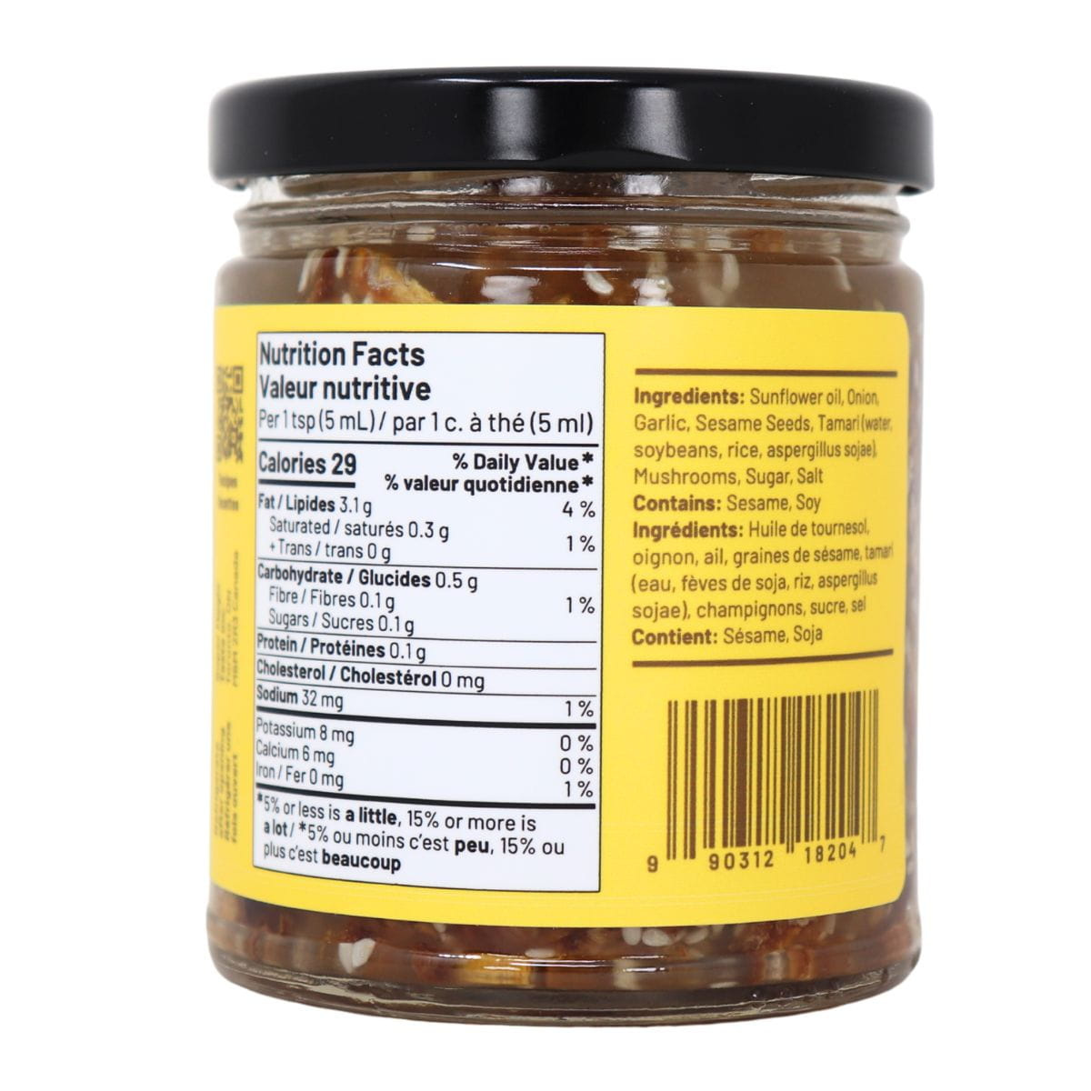 Sunflower oil, Onion, Garlic, Sesame seeds, Tamari (Water, Soybeans, Rice, Aspergillus sojae), Mushrooms, Sugar, Salt.