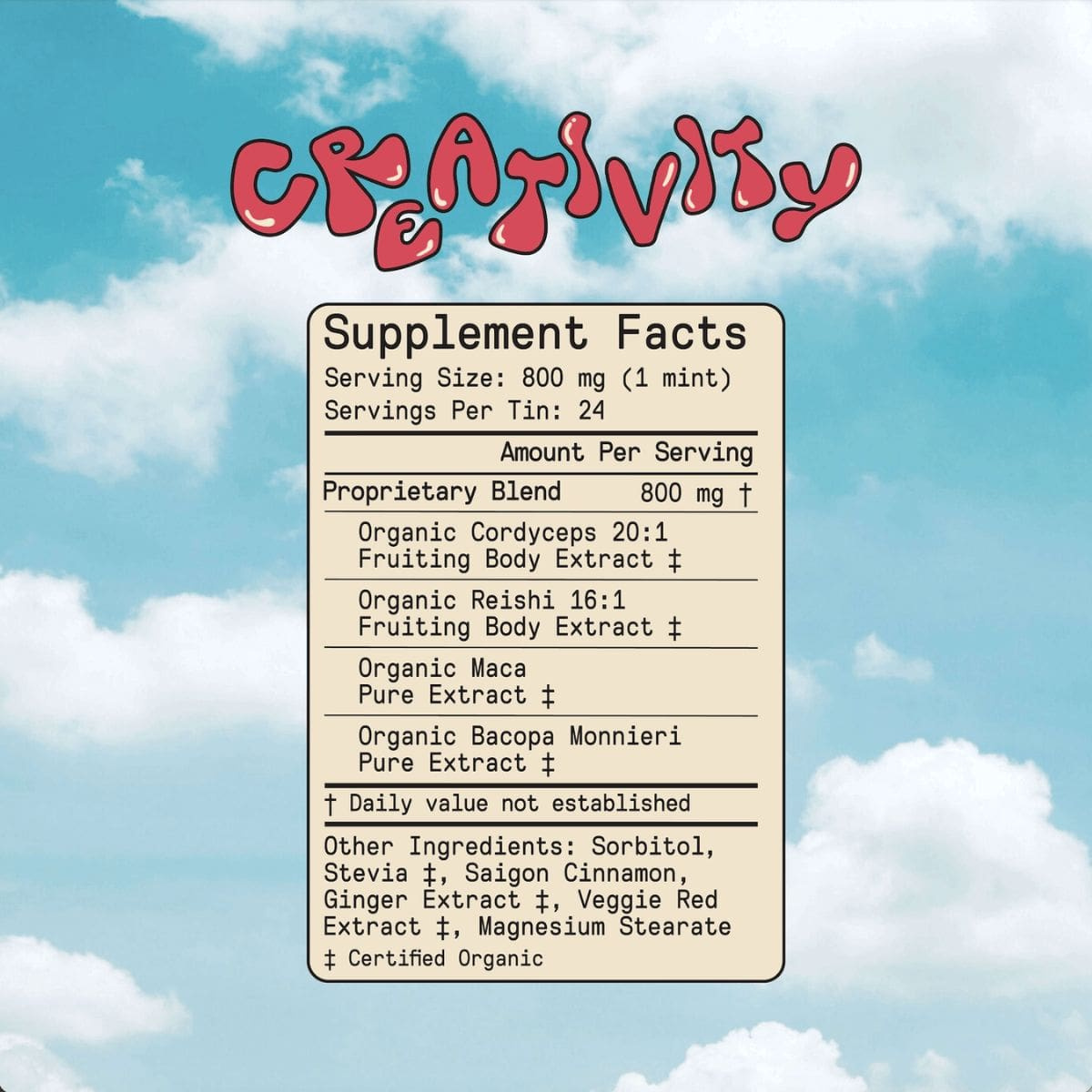 Let your imagination run wild… Then rein it in with a little help from SuperMush Daily Creativity Mints. These fiery little breath-fresheners are more than just a pretty peppermint. They’re your pocket-sized spark plug, crafted with superfood mushrooms and adaptogens to stoke your creative fire without sending your blood sugar into orbit.