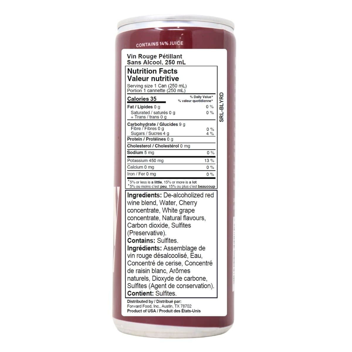 De-alcoholized red wine blend, Water, Cherry concentrate, White grape concentrate, Natural flavours, Carbon dioxide, Sulfites (Preservative).