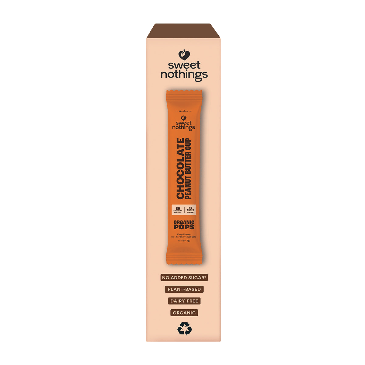Sweet Nothings Organic Chocolate Peanut Butter Cup Dessert Pops are the dairy-free frozen dessert you’ve been looking for. Each pop blends organic peanut butter, cocoa, sunflower seeds, and dates into a plant-based frozen treat that feels indulgent without the refined sugar or dairy.