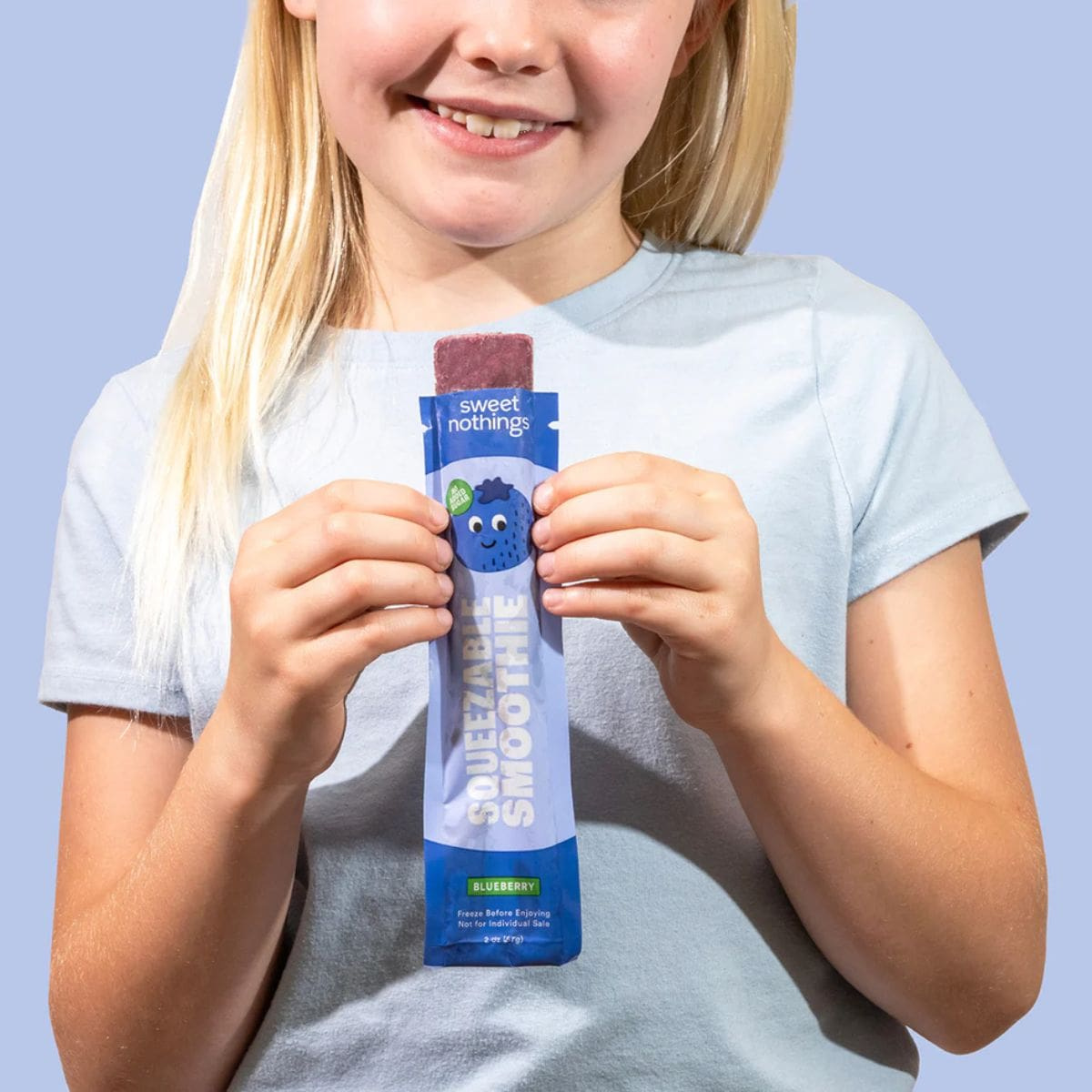 Snack time just got a whole lot smoother. Sweet Nothings Blueberry Kale Squeezable Smoothie packs a punch of organic fruits and veggies into a fun-to-squeeze pouch your kids will actually be excited about. All with sweet blueberries, sneaky kale and absolutely no added sugar! This low-sugar smoothie is as smart as it is scrumptious.