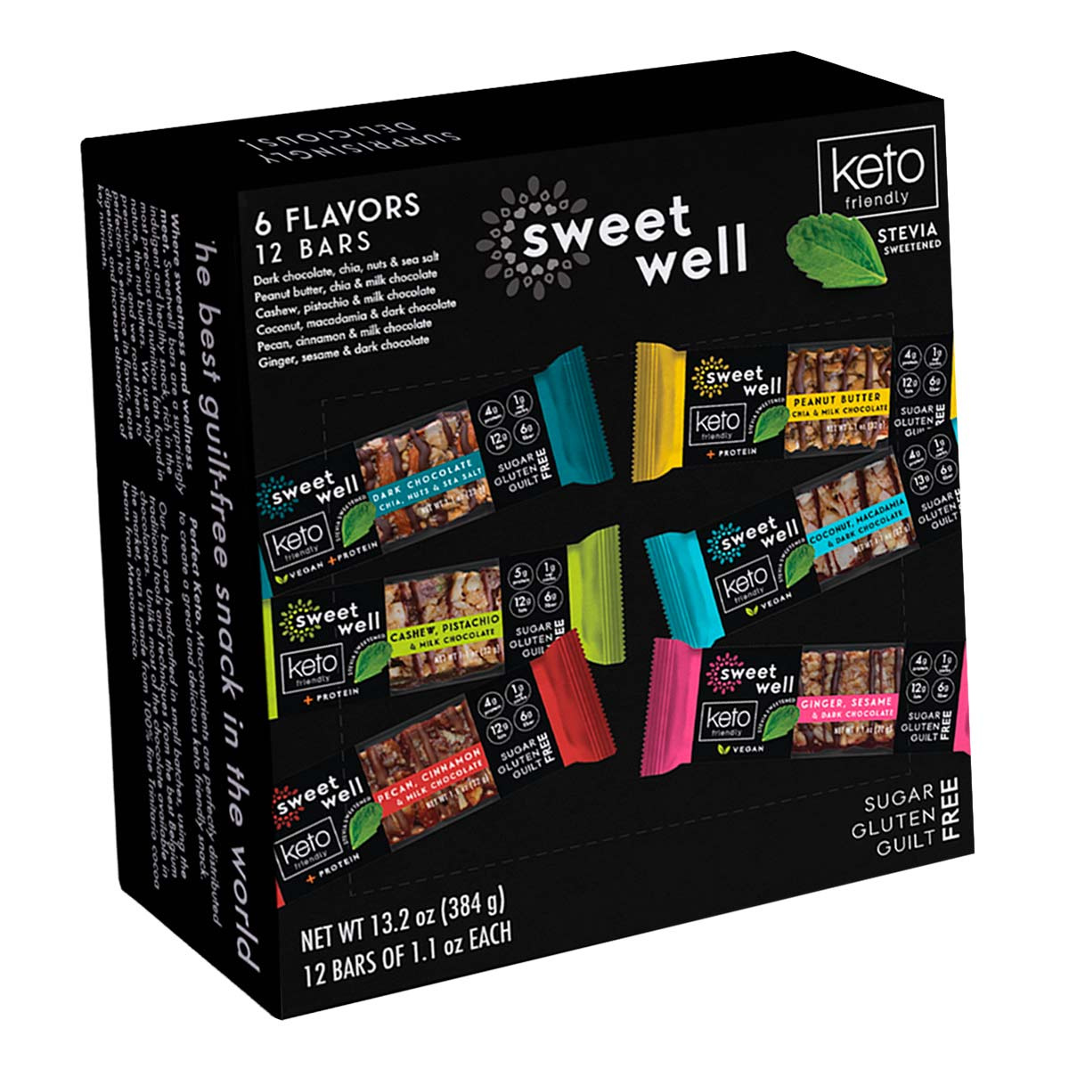 Sweetwell Keto Friendly Bars Variety Pack, 12 Bars