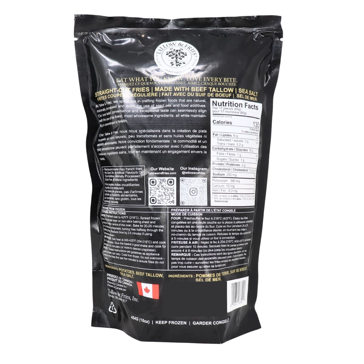 Crispy, golden, and unbelievably flavorful, Tallow & Fries Beef Tallow Straight Cut Fries with Sea Salt are the ultimate upgrade to your fry game. Cooked in 100% pure beef tallow, these fries deliver that rich, old-school flavour and crunch you can’t get from vegetable oils. Lightly seasoned with sea salt, they’re the perfect balance of savoury and satisfying, with a taste that takes you straight back to the classic diner days.