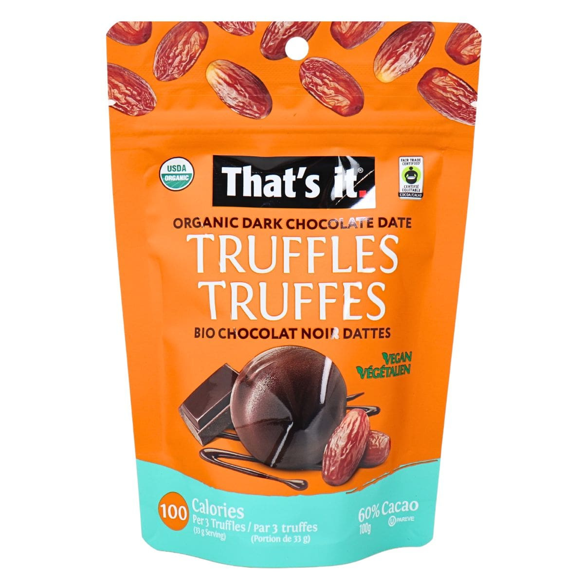 Behold your new favourite, low-calorie, Organic treat! That’s It. Dark Chocolate Date Truffles will have your tastebuds excited and your mouth watering for a taste. These gluten-free and vegan dark chocolate truffles are made with simple ingredients, and only 2 of them. Just organic dates and Fair Trade dark chocolate. That’s It! Never was there a more flavourful, delicious, and perfect after-dinner treat than these truffles. These truffles are also safe for the kiddos. They are Top 12 Allergen-Free and something even the kids will enjoy. Nothing beats simple snacking, and we’re here for it. Try adding to your Valentine’s Day charcuterie board for a unique and plant-based twist. Or share with the whole family during movie night! However you decide to eat these treats, we know you will have a good ol’ time.
