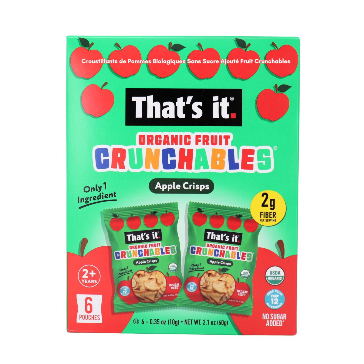 Meet your new favourite clean snack: That’s It No Sugar Added Organic Fruit Crunchables Apple Crisps. Each bag is made from just one ingredient—organic apples—gently crisped into light, airy bites with a satisfying crunch. No added sugar, no concentrates, no preservatives, and absolutely nothing artificial. Just the naturally sweet, tangy flavour of real apples in a perfectly munchable form.