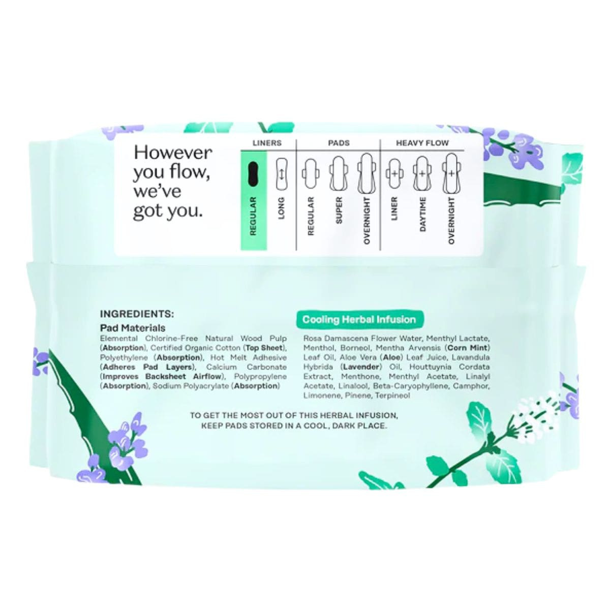 The Honey Pot Organic Cotton Cover Cooling Herbal Infusion Regular Liners, 30 Count