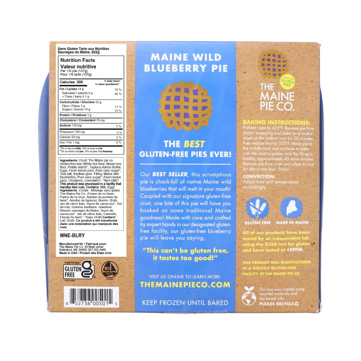 Bring a taste of New England tradition to your table with The Maine Pie Co. Gluten-Free Maine Wild Blueberry Pie. Bursting with juicy, hand-harvested wild blueberries from Maine, this pie balances sweet and tart flavours in every bite. Wrapped in a golden, buttery gluten-free crust that rivals the homemade classics.