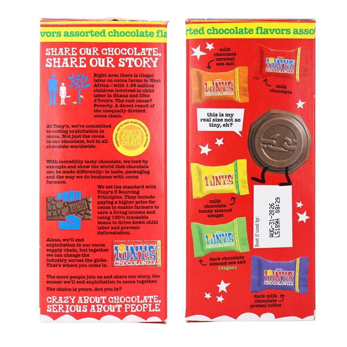 Dark Chocolate Almond Sea Salt: Chocolate Liquor, Sugar, Almonds, Cocoa Butter, Sea Salt, Soy Lecithin. Contains: Almond, Soy. May Contain: Milk, Wheat, Egg, Tree Nuts.