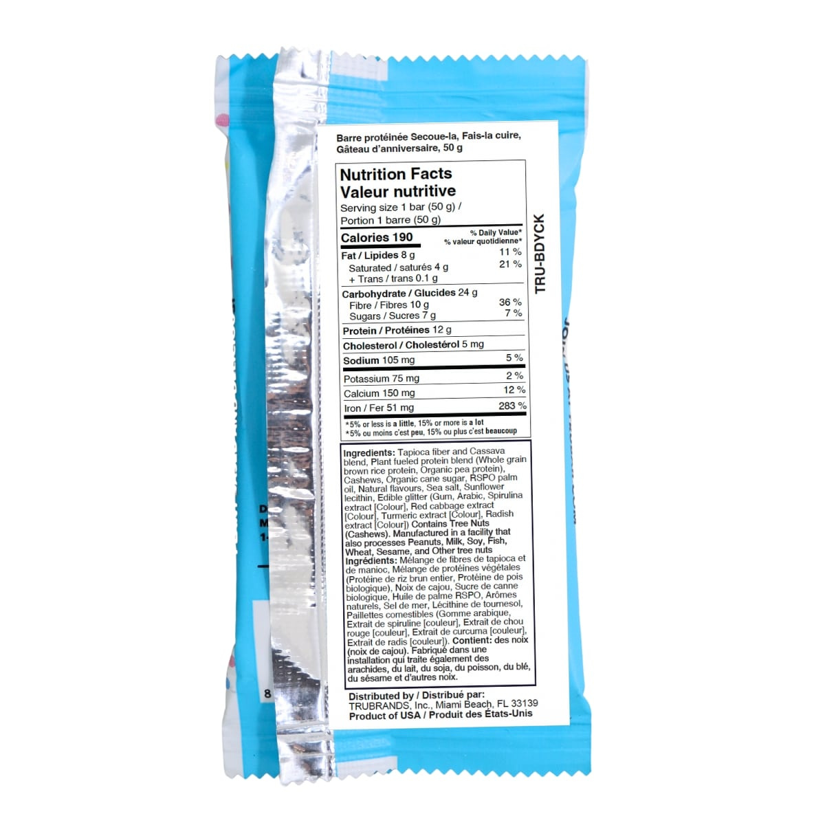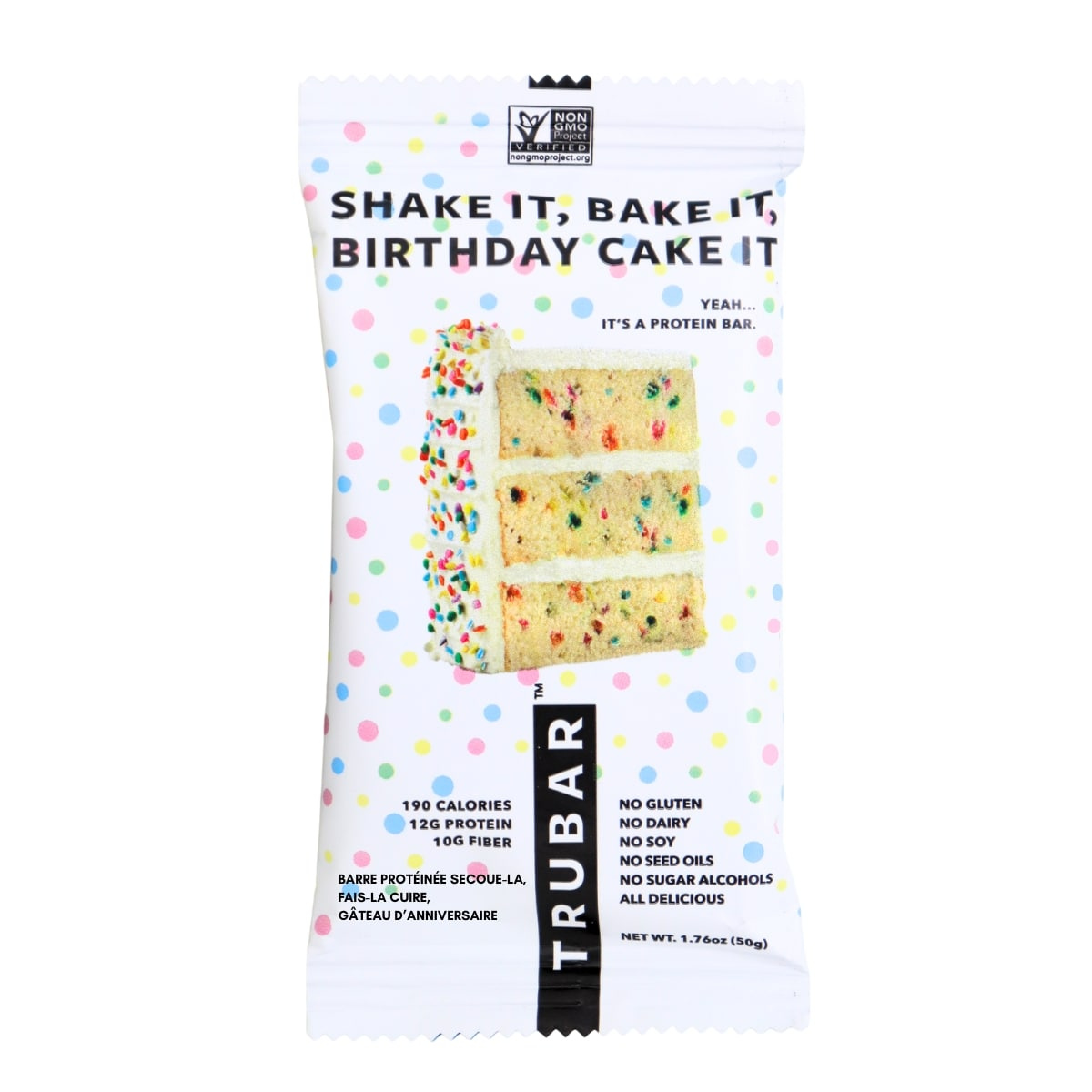 TRUBAR’s Shake It, Bake It, Birthday Cake It Protein Bar brings the party to your snack routine! Each bite is bursting with sweet, nostalgic birthday cake flavour, think vanilla frosting, sprinkles, and pure joy, all wrapped in a soft, chewy bar that fuels your body with clean, plant-based protein.