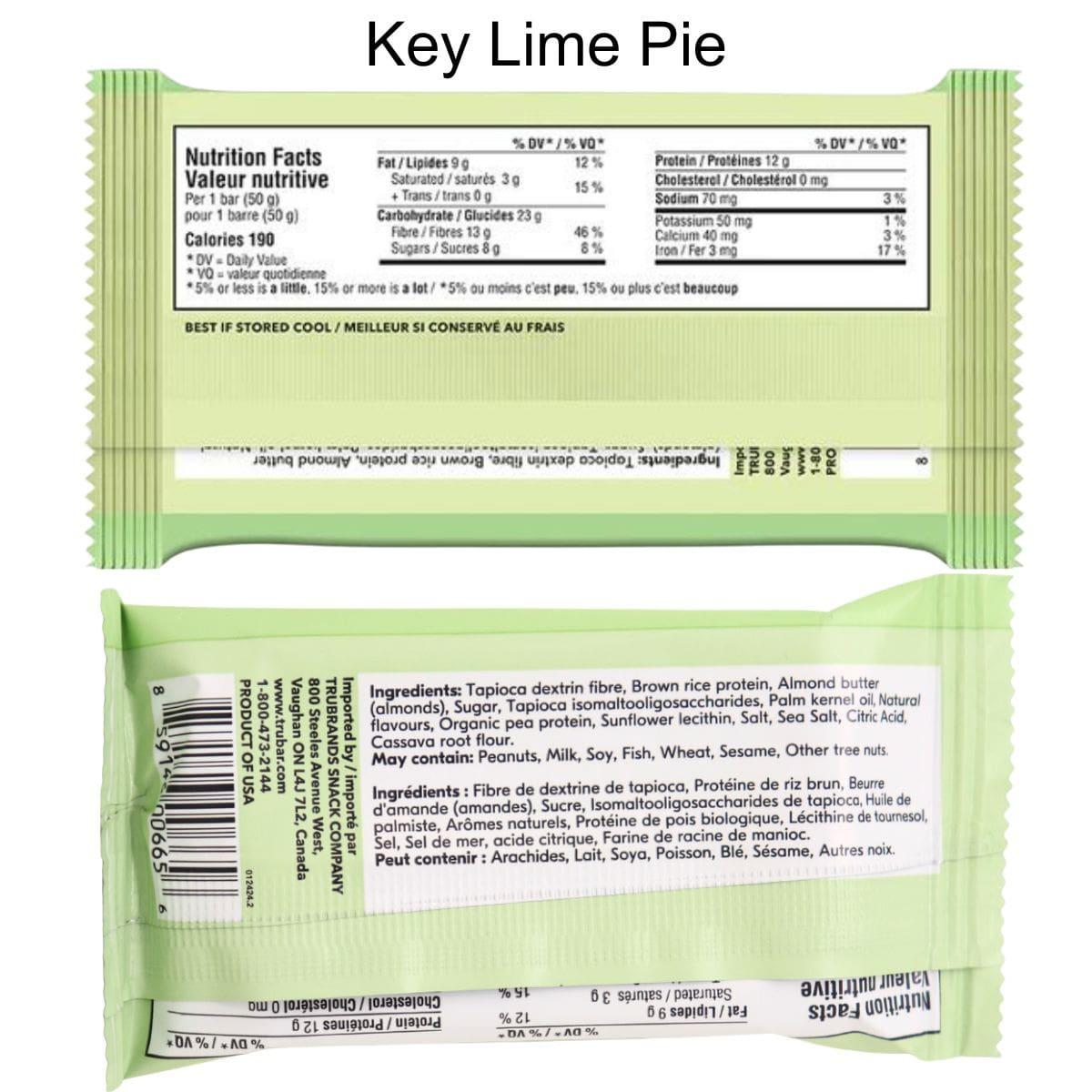 TRUBAR Protein Bar Whipped For Key Lime, 50g - Tapioca fiber and cassava blend, plant-fueled protein blend (whole grain brown rice protein, organic pea protein), almonds, cane sugar, RSPO palm oil, natural flavors, sea salt, sunflower lecithin, citric acid. Contains: Tree nuts (almonds).