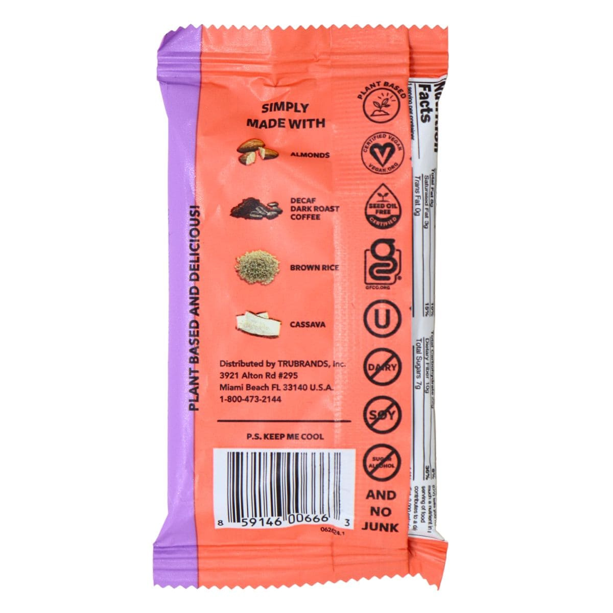 Brewed for busy days but perfected for coffee lovers, TRUBAR's Whole Lotta Macchiato protein bar is here to satisfy your coffee cravings on the go. Packed with 12g of plant-based protein and 10g of fibre, this gluten-free vegan protein bar blends rich coffee flavour with creamy, dessert-like indulgence for a protein bar that’s bold, smooth and dangerously satisfying. Trust us, it’s a whole lotta better! Soft and chewy, and made with clean and simple ingredients that you can actually pronounce (no seed oils, no dairy, and no soy here!), TRUBAR's maccchiato coffee protein bar serves up your favourite coffee shop order, all in one clean and functional bar! That’s a Whole Lotta Macchiato magic!