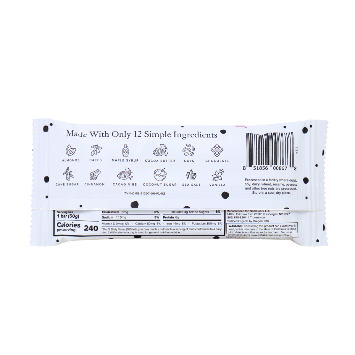 Enjoy the flavour of a classic cookie in a nourishing, better-for-you snack. Truvani The Only Bar Oatmeal Chocolate Chip Cookie is crafted from simple, organic ingredients that bring together wholesome oats, rich chocolate, and a hint of cinnamon to create a dessert snack bar that’s better than an oatmeal chocolate chip cookie.