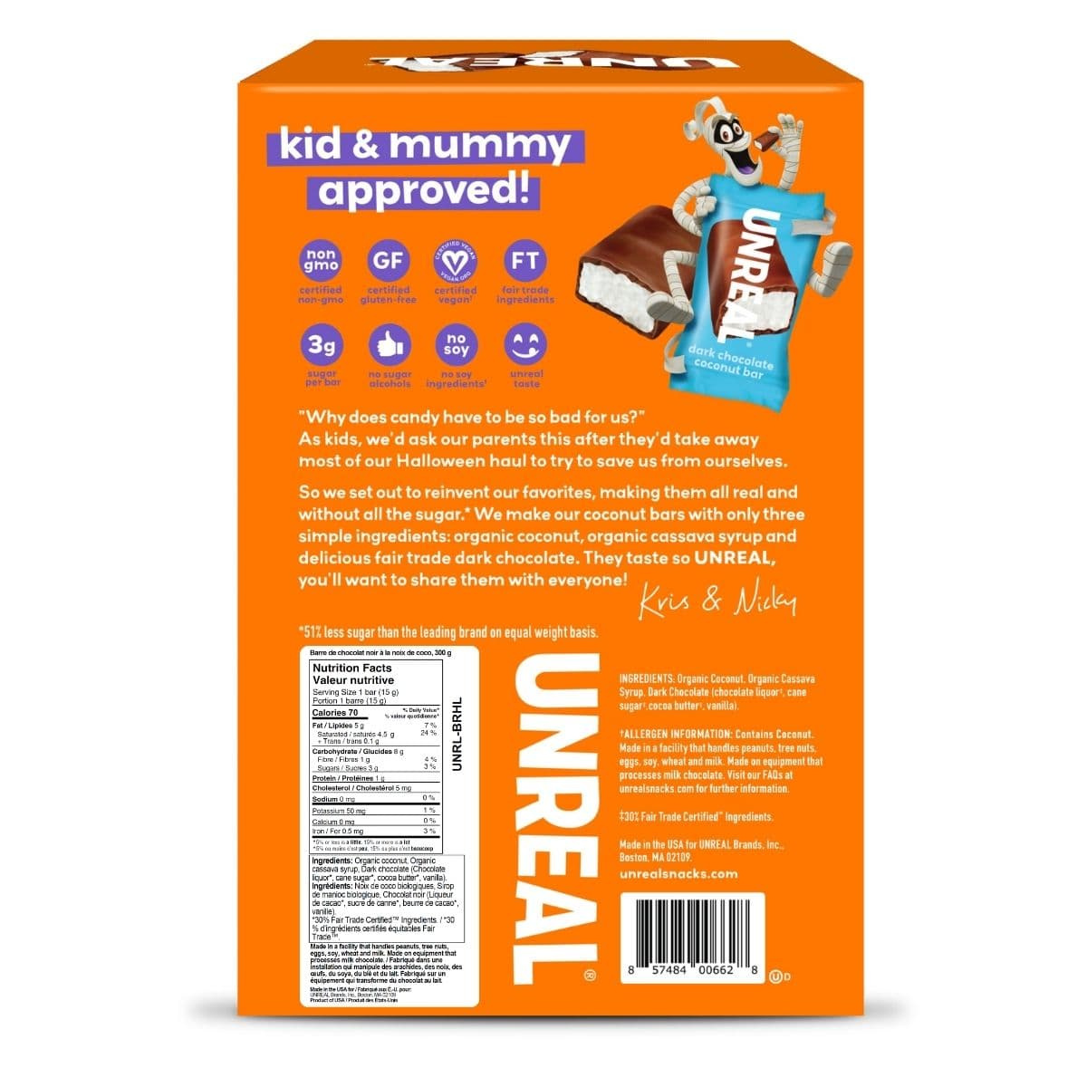 This Halloween, the magic isn’t in the costumes, the real magic is in your candy! Unreal’s dark chocolate coconut bars are made with just three simple and clean ingredients for better-for-you trick-or-treating that’s truly magical! With delicious shredded coconut surrounded by rich and smooth dark chocolate, Unreal’s coconut bars are ready to cast a delicious spell on your Halloween candy stash. Because here’s the real trick—they’re low in sugar! With only 3g of sugar, you can fill up those trick-or-treat bags–Unreal’s coconut bars are the healthy Halloween candy that won’t come back to haunt you later.