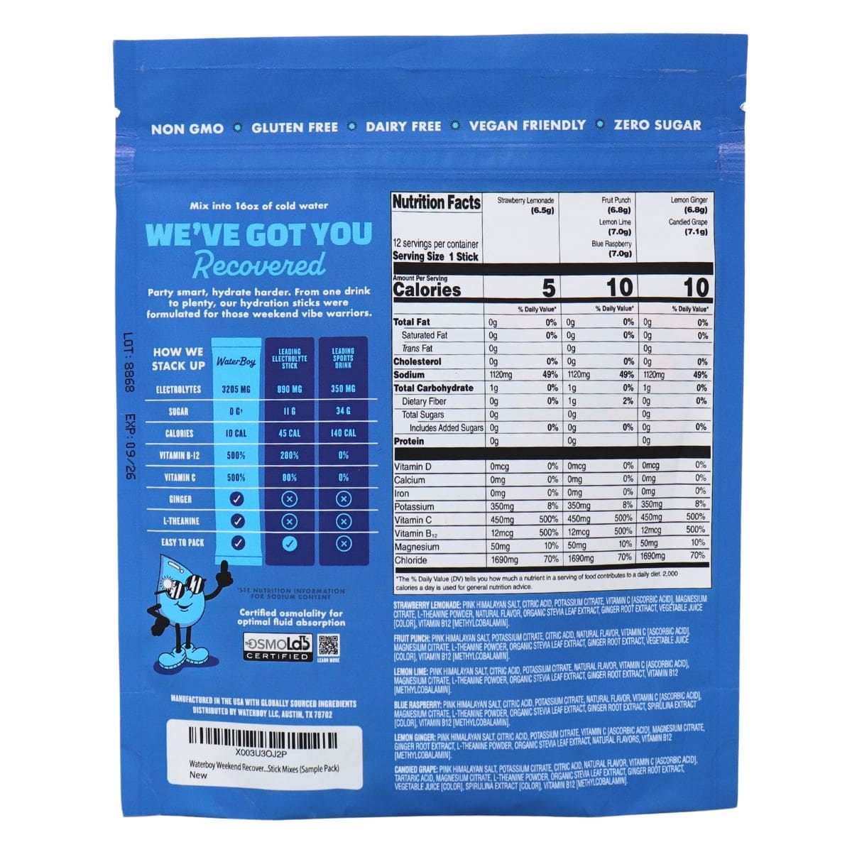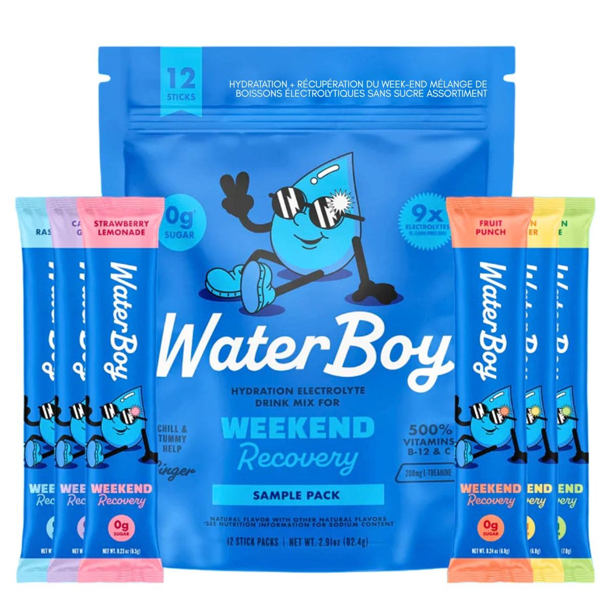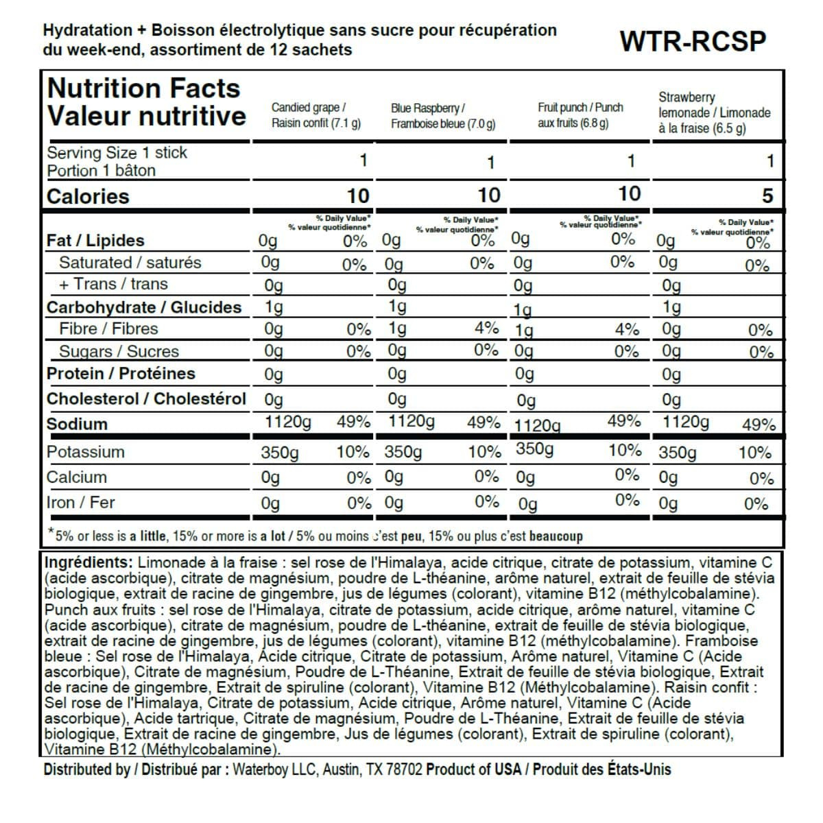 Waterboy Hydration + Weekend Recovery Sugar-Free Electrolyte Drink Mix Variety Pack, 12 Pack