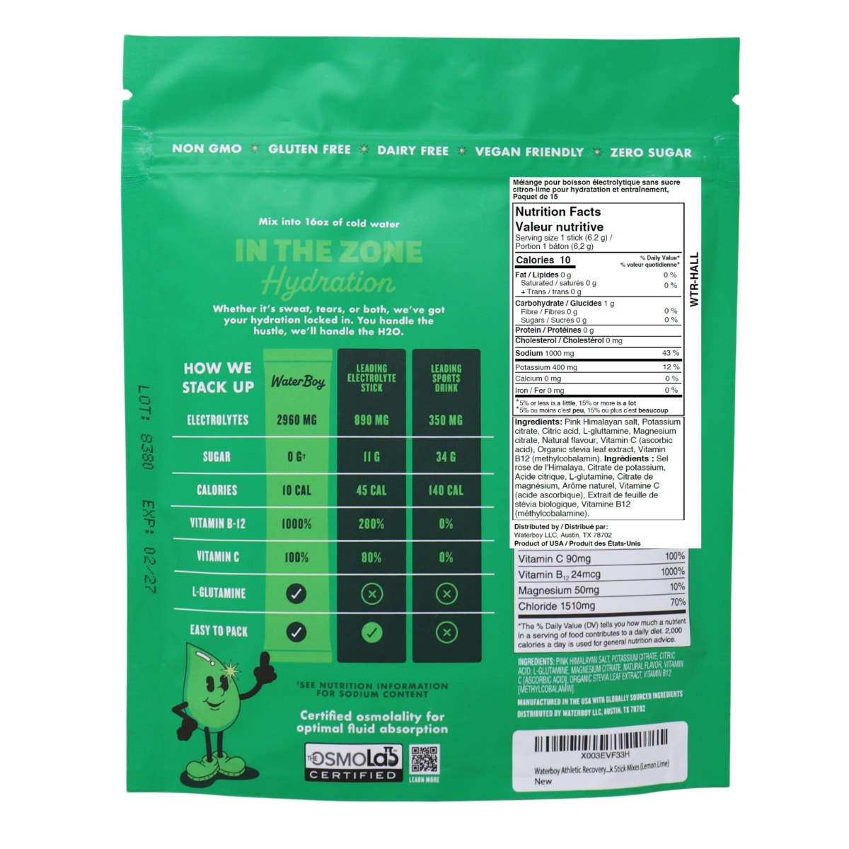 Fast hydration, improved endurance, and less soreness? That's what Waterboy's electrolytes delivers! With 3x the electrolytes of leading brands, this hydration powder is specially designed with athletes in mind. With a potenet blend of L-glutamine and vitamin B12 and C, Waterboy Workout Electrolytes helps to support muscle function, energy levels, and overall hydration. with a refrshing lemon-lime flavour, zero sugar, and only 10 calroies, Waterboy workout electolytes will ill be your new favourite gym buddy!