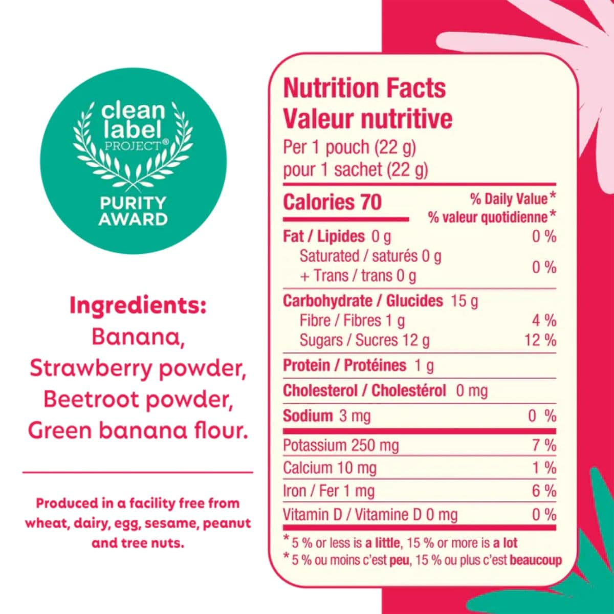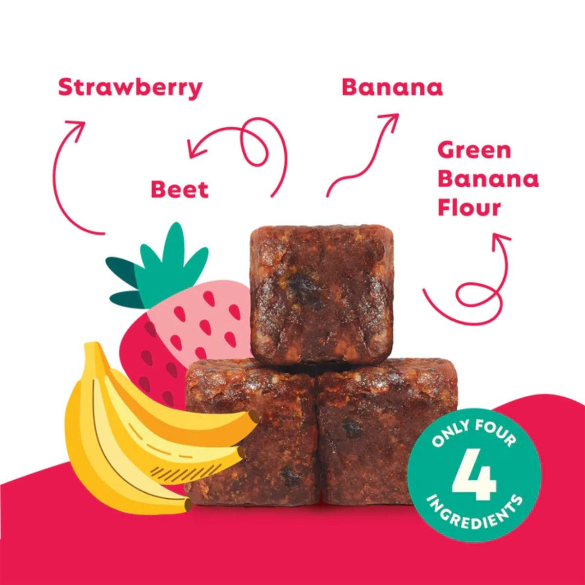 Banana, Strawberry powder, Beetroot powder, Green banana flour.
