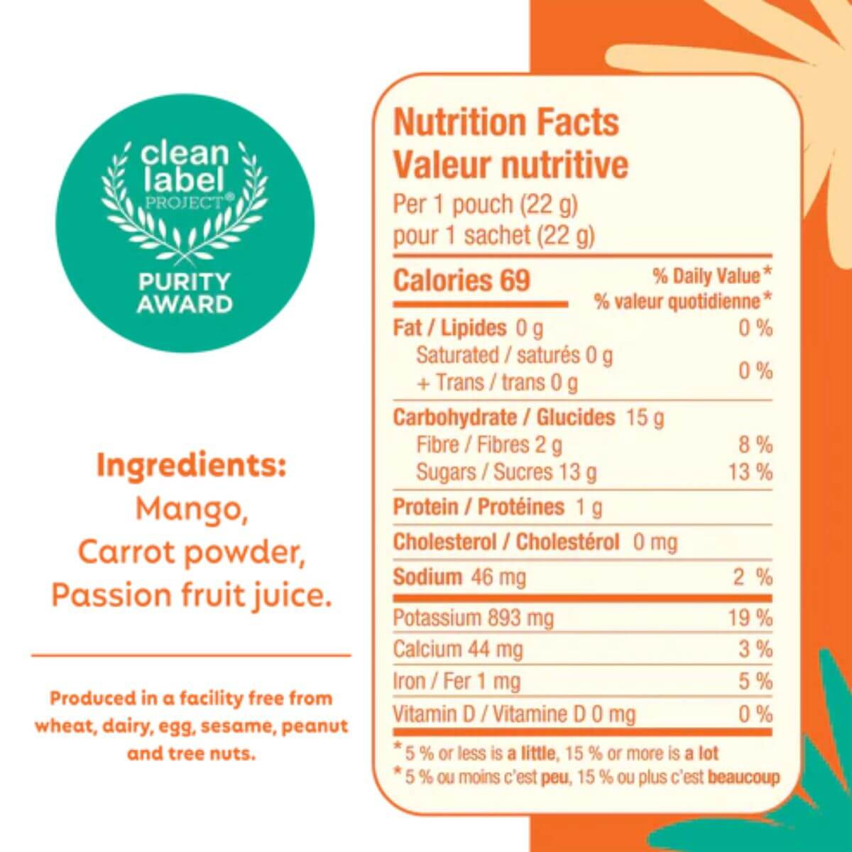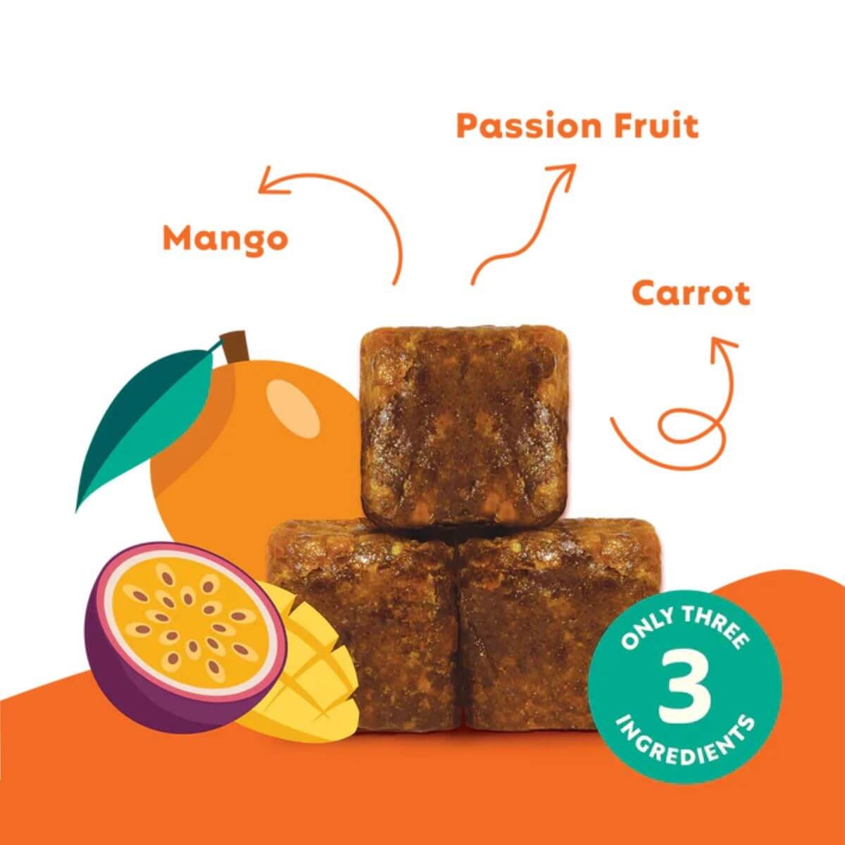 Mango, Carrot powder, Passion fruit juice.