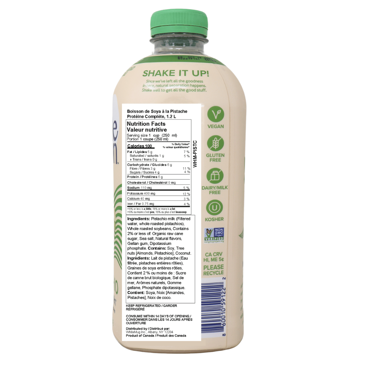 Pistachio milk (Filtered water, whole roasted pistachios), Whole roasted soybeans, Contains 2% or less of: Organic raw cane sugar, Sea salt, Natural flavors, Gellan gum, Dipotassium phosphate.