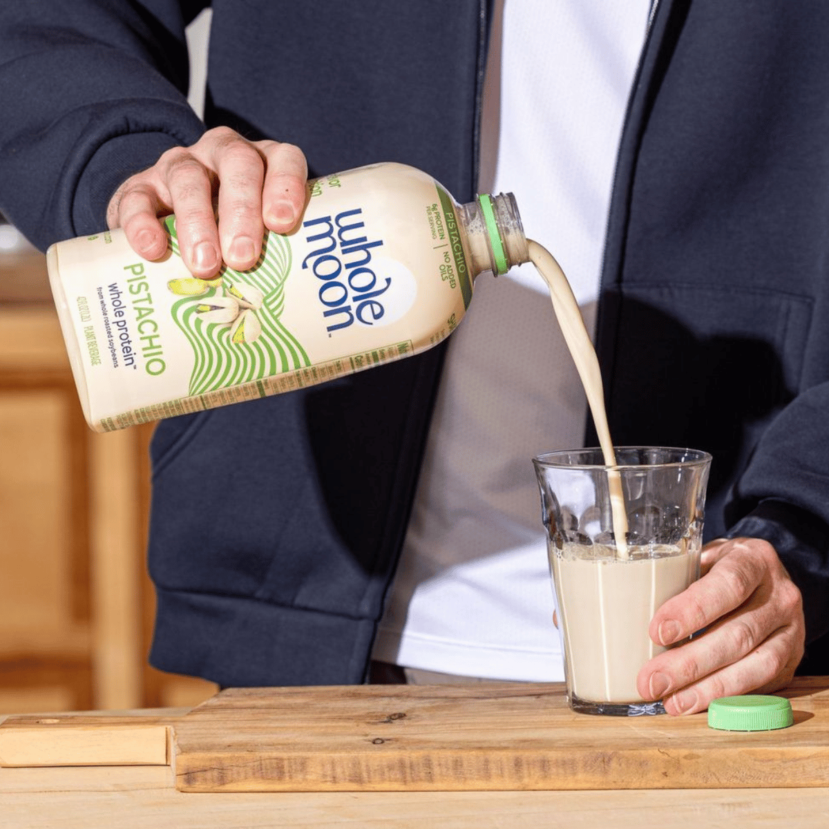 If you have never tried pistachio milk before, this is the place to start. Whole Moon’s Pistachio Whole Protein Beverage blends whole roasted pistachios with soybeans to create a plant-based milk that is creamy, slightly sweet, and gently nutty. With a beautiful pale green hue and a rich creamy texture that coats your mug just right, this dairy-free milk brings a little luxury to your daily routine.