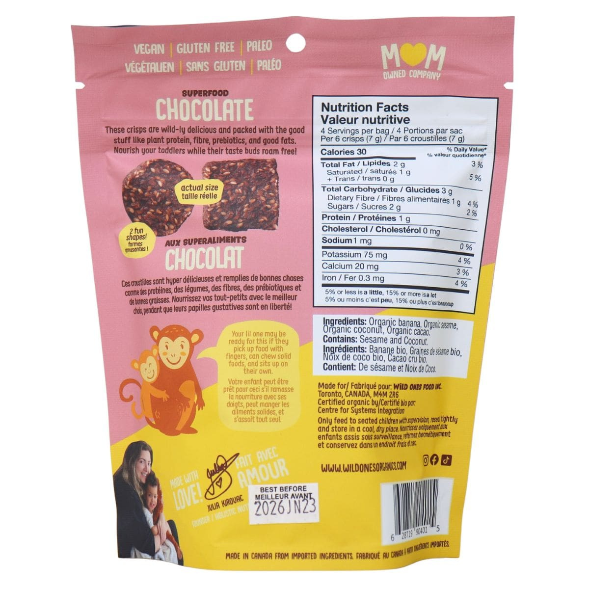 Sweet, chocolatey, and naturally nourishing, Wild Ones Superfood Chocolate Smoothie Crisps turn real fruit and cacao into a crunchy treat little ones can enjoy anytime. Made with organic banana, sesame, coconut, and cacao, these crisps deliver smooth chocolate taste with zero added sugar or fillers.