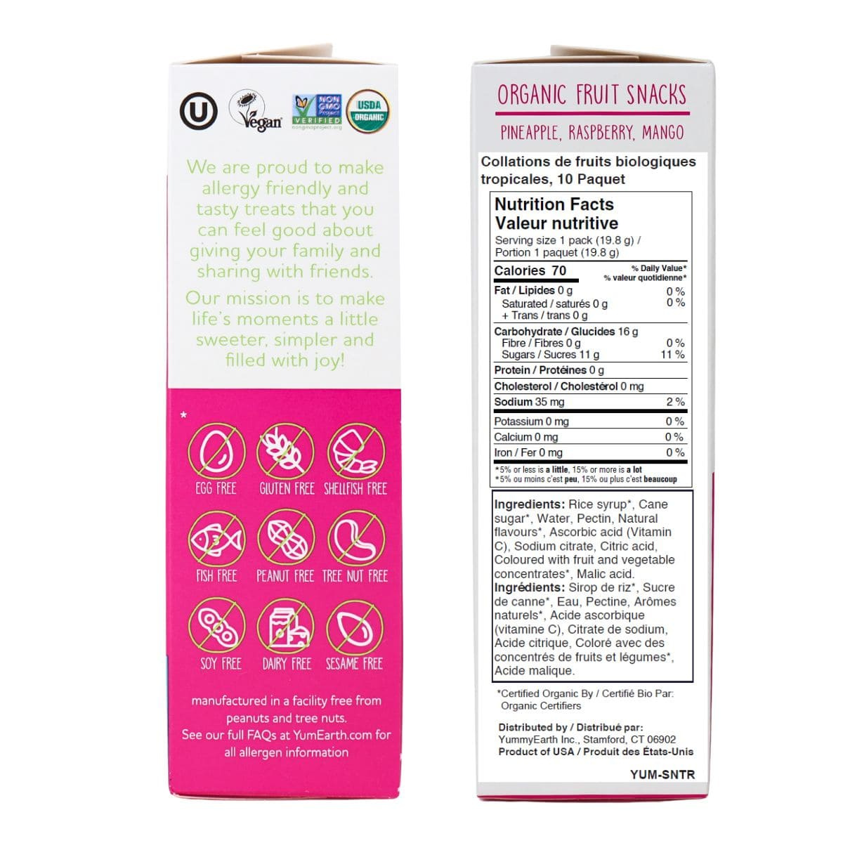 Escape to the tropics, no passport required! YumEarth Organic Fruit Snacks bring you a juicy, chewy taste of paradise, featuring three exotic flavors: pineapple, raspberry, and mango.
