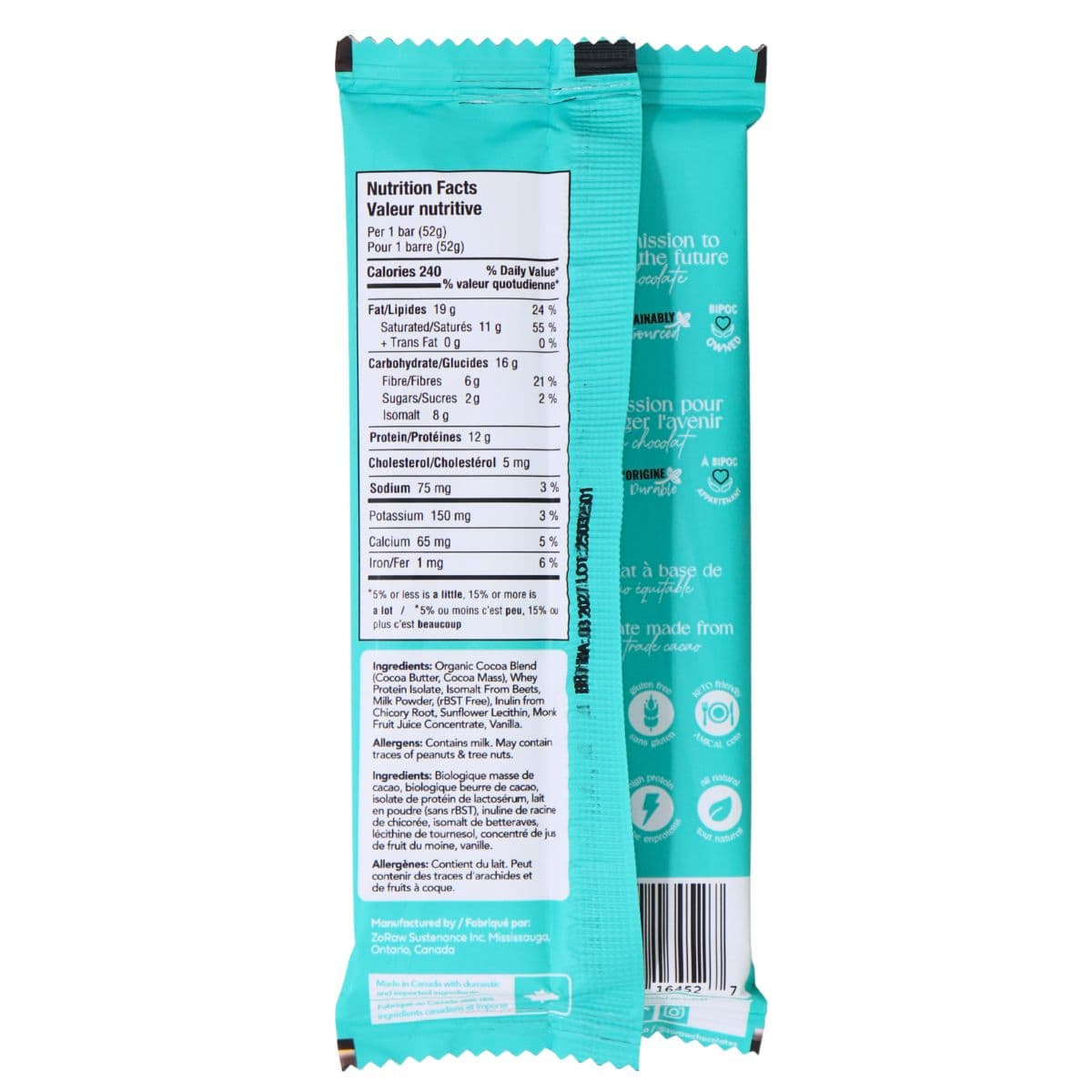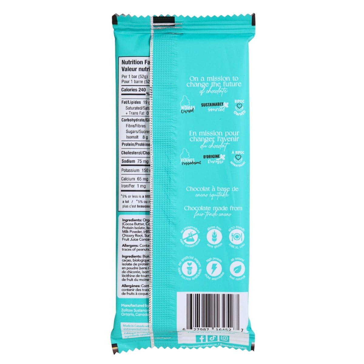 Crafted with the finest cocoa mass and cocoa butter, all mingling harmoniously with creamy milk, ZoRaw’s chocolate bars come together to create a decadently rich and irresistibly smooth healthy milk chocolate bar! But there’s more than meets the eye with ZoRaw. Packed with 12g of protein and 6g of fibre, it's not just a good chocolate bar, it’s a melt-in-you-mouth marvel that will power you up, fill you up, AND satisfy your sweet tooth. And with just 2g of sugar and only 2 net carbs, this keto high-protein milk chocolate bar is like a sweet dream come true!